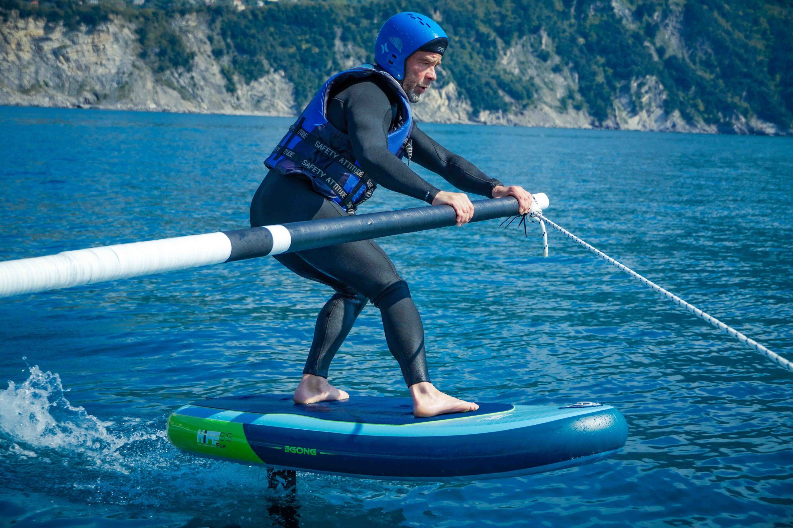 - Partenza con cima di traino + pumping + surfata seconda onda del gommone con cima